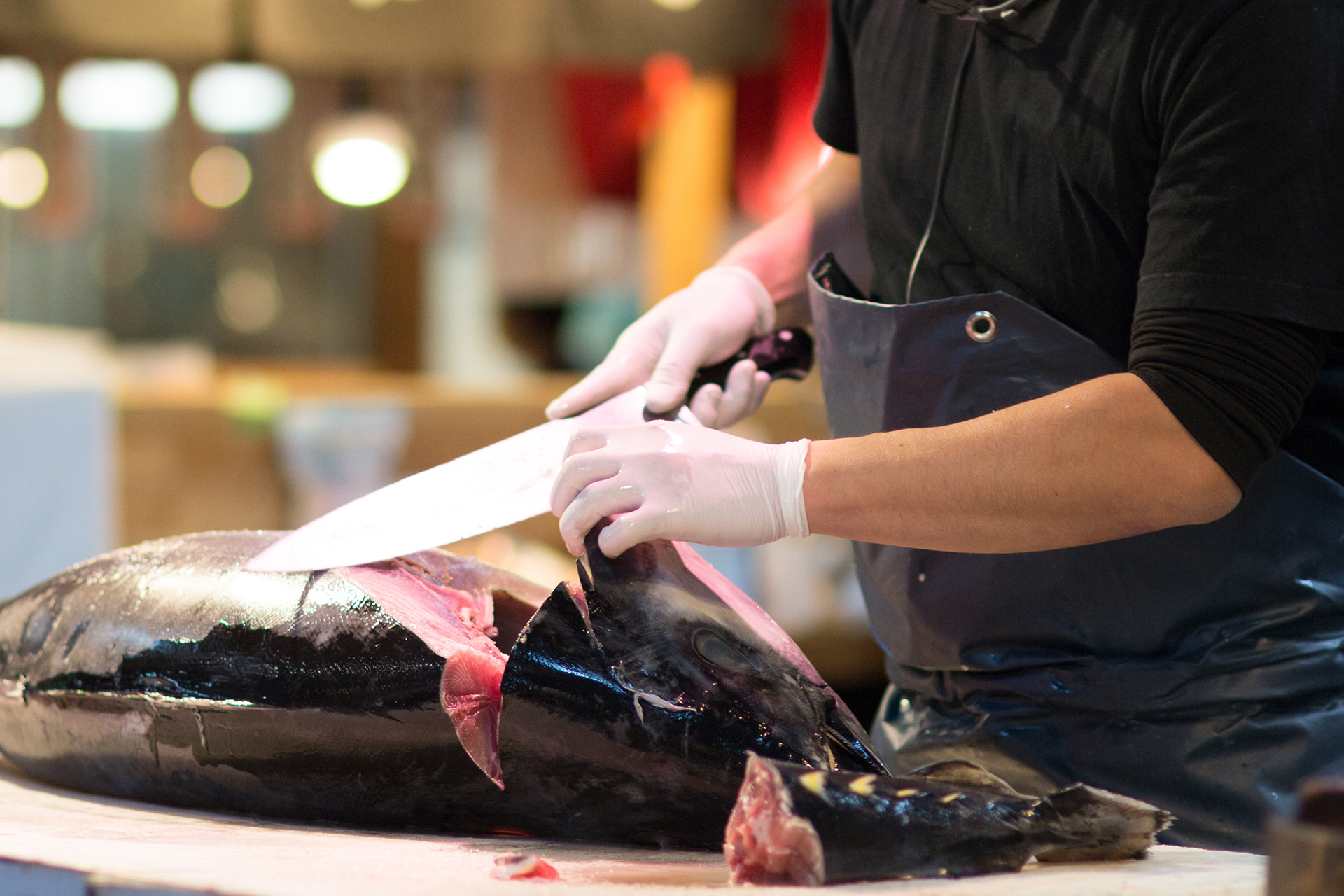 私たちは、国内外から集まる魚介類を保管・管理、そして品質を確かめ、取引・販売を行う卸売業者です。